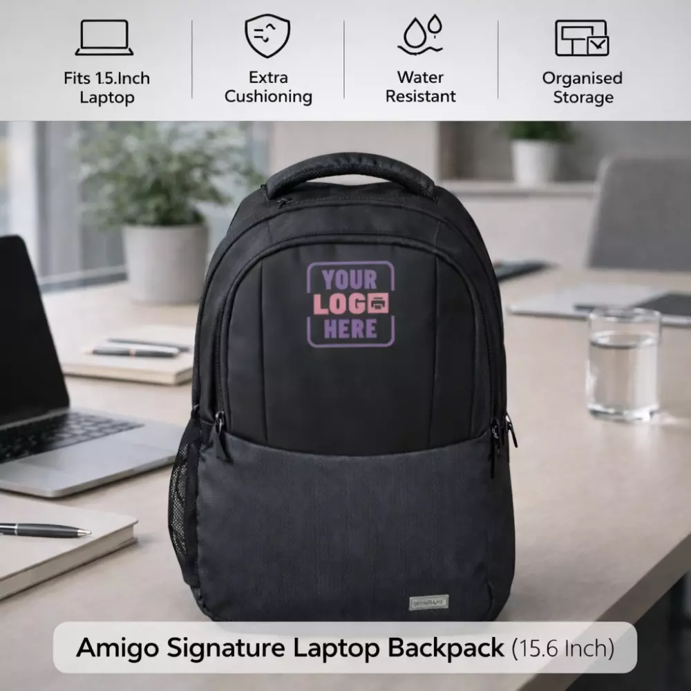 Amigo Signature Laptop Backpack combines organised storage, weather protection, and corporate-ready aesthetics, making it suitable for structured corporate gifting and bulk procurement requirements.