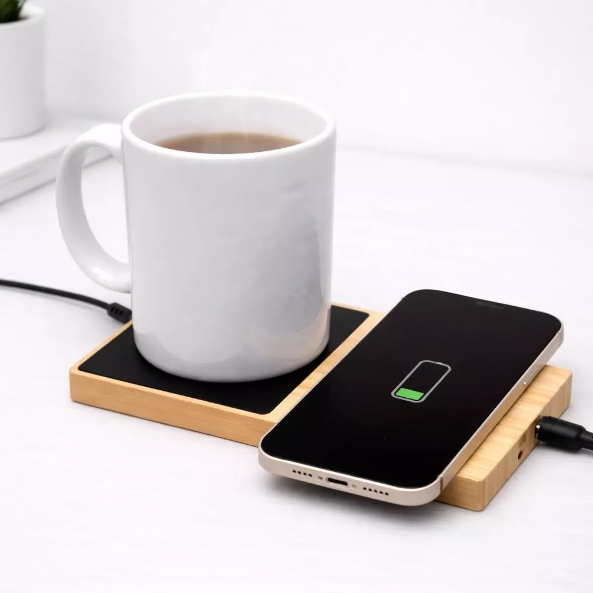 For bulk storage prior to corporate distribution, keep units securely packed to prevent surface scratches. With proper handling, Bamboo 2-in-1 Wireless Charger with Cup Warmer maintains its structured appearance and reliable functionality across regular usage.