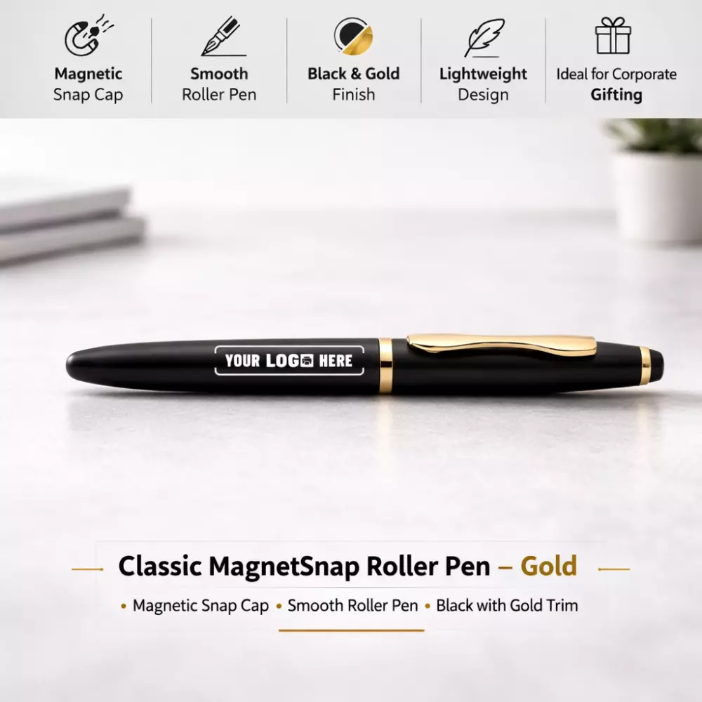 The Classic MagnetSnap Roller Pen – Gold is a practical and refined writing instrument designed for everyday office use and cost-effective corporate gifting. Combining a clean design with a magnetic snap cap mechanism, this roller pen offers convenience, reliability, and professional appeal without the premium positioning of executive models.