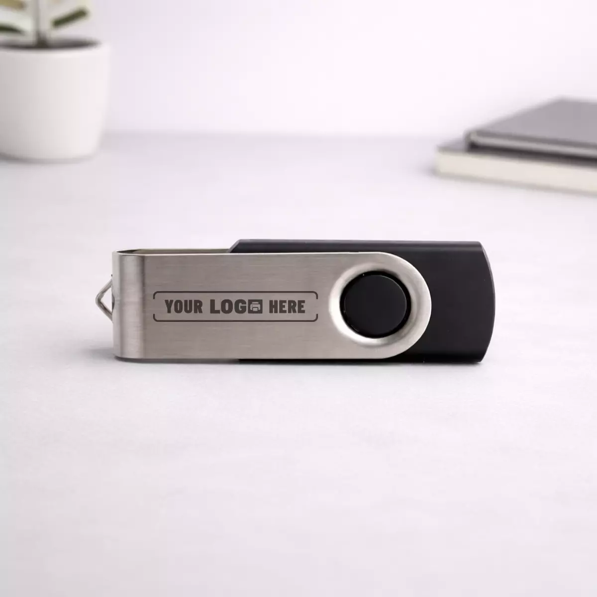 The Classic Swivel Pendrive is constructed using a combination of metal and plastic. The metal swivel section adds a premium touch and provides an ideal surface for branding, while the plastic base ensures structural integrity and long-term usability. This combination is commonly preferred in corporate gifting due to its balance of cost efficiency and professional appearance.