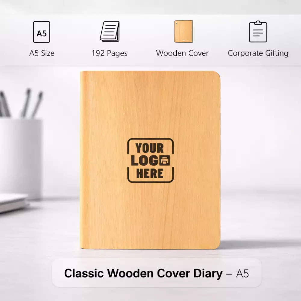 With practical sizing, durable construction, and refined wooden aesthetics, Classic Wooden Cover Diary – A5 aligns with corporate gifting strategies that prioritise utility, presentation, and everyday workplace relevance.