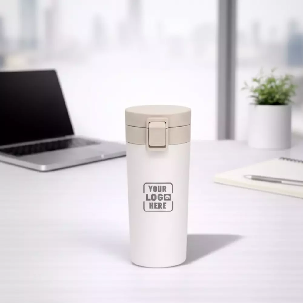Since travel flasks are frequently used during meetings and commuting hours, logo visibility remains consistent throughout the day. This ensures practical brand recall within office settings without appearing promotional in nature. The neutral colour tone also aligns well with formal and semi-formal workplace environments.