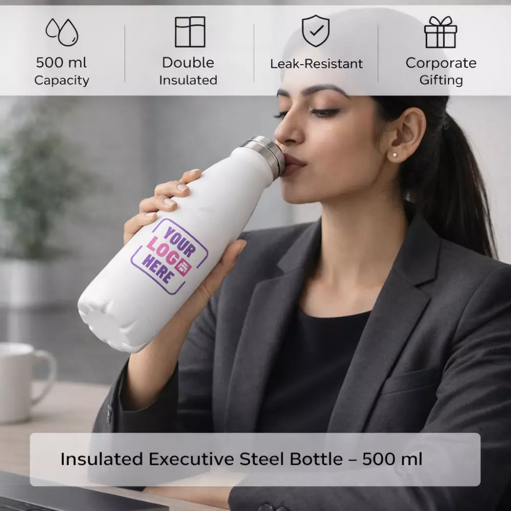 Branding can be executed through screen printing, UV printing, or laser engraving depending on artwork requirements and order volume. Organisations can integrate Insulated Executive Steel Bottle – 500 ml into employee welcome kits, leadership onboarding programs, corporate events, and festive gifting initiatives.