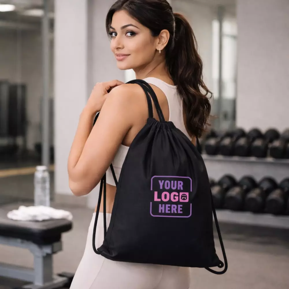 The drawstring design allows the bag to be worn comfortably over the shoulders or carried by hand, depending on user preference. Its streamlined construction ensures the bag remains lightweight even when filled, making it ideal for day-long usage during events or daily commuting. The clean finish and minimal styling allow the bag to fit seamlessly into both professional and casual settings.