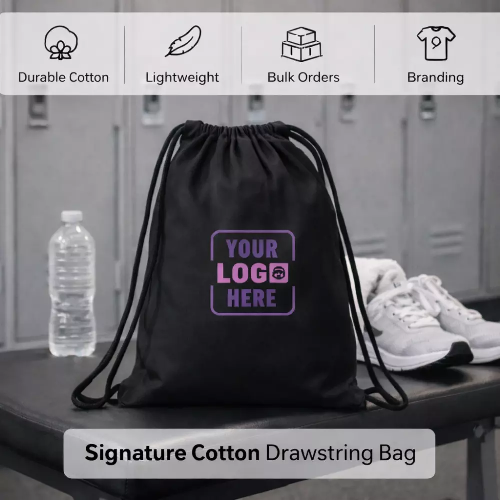Signature Cotton Drawstring Bag is suitable for custom branding and promotional use. The plain cotton surface provides an ideal base for printing company logos, event names, or campaign messaging using standard branding techniques such as screen printing or heat transfer. This makes the bag an effective branding tool while remaining practical for everyday use.