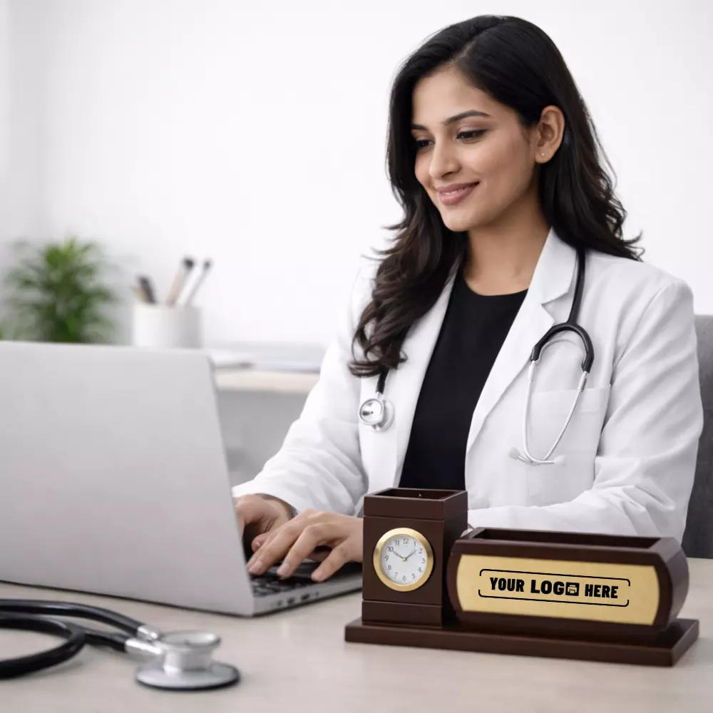 Signature Wooden Desk Organizer with Clock is a premium corporate gifting solution designed for executive desks, leadership cabins, and professional workspaces. Crafted with a refined wooden finish and integrated with a classic analog clock, this desk organizer combines functionality and aesthetic appeal in a single structured unit. It is suitable for organisations looking to present a formal and long-lasting gift that aligns with corporate professionalism.