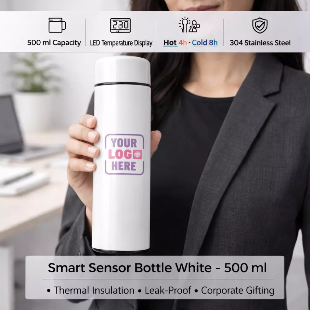 Smart Sensor Bottle White is a technology-enabled thermal bottle designed to meet the expectations of modern corporate gifting and everyday professional use. Combining smart functionality with a clean, minimal white finish, this bottle delivers a balance of innovation, usability, and refined aesthetics. It is well-suited for employee onboarding kits, client gifting, leadership hampers, and premium corporate merchandise programs where product relevance and long-term usage are key considerations.