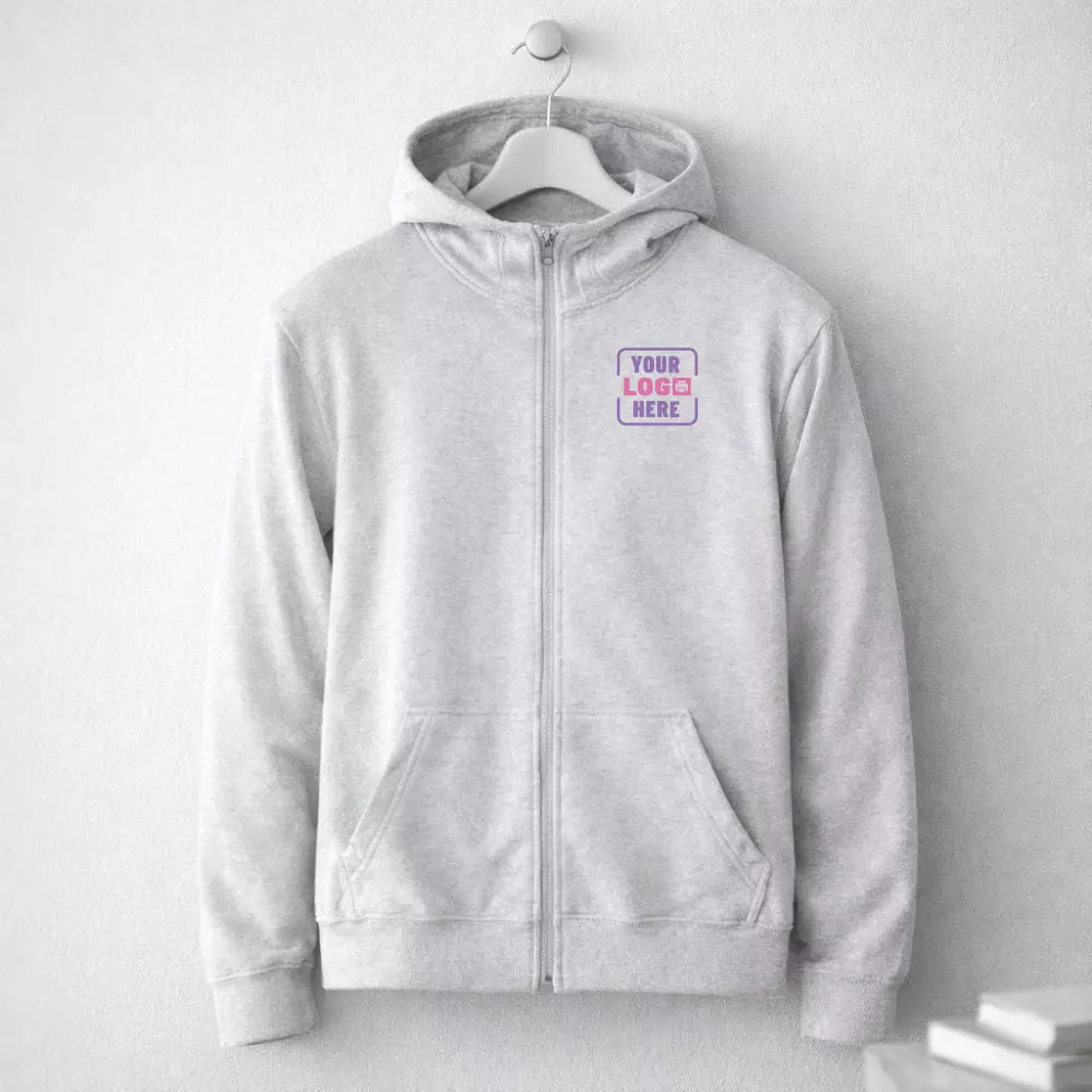 Sustainable 2-in-1 Zipper Hoodie supports DTF Printing, enabling detailed corporate logo application across chest, sleeve, and back panel placements. The fleece surface allows stable print placement without compromising garment flexibility. Multi-colour logos, campaign messages, and department identifiers can be applied clearly and consistently.